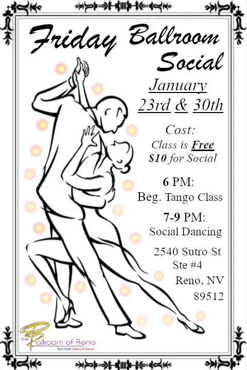 The Ballroom of Reno strives to provide dance opportunities for everyone, creating a safe environment to learn, create, and grow. We are a 501c3 non-profit organization. Our outreaches include a youth dance program, giving the gift of dance to the next generation, and our Dance With Me dementia-friendly dance classes, keeping you forever young at heart. We host free group classes during the week, and our instructors specialize in all genres of partner dancing.