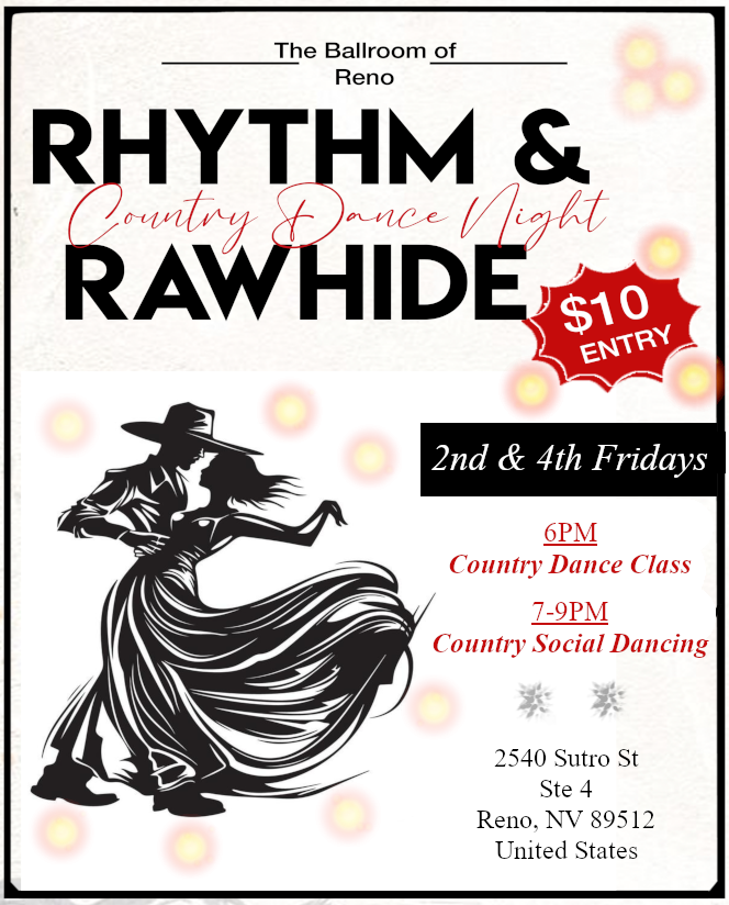 On the 2nd & 4th Friday’s, we host: Rhythm & Rawhide (Aka Country Socials). For those who want to practice their country dances come to these Friday socials. Cost: $10