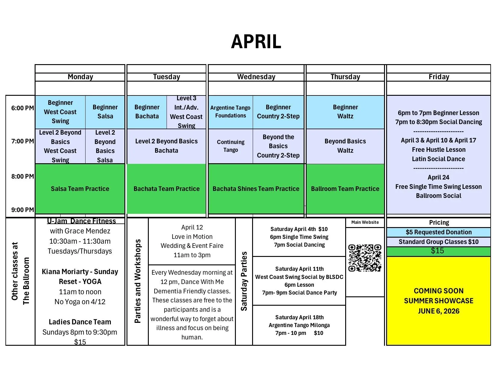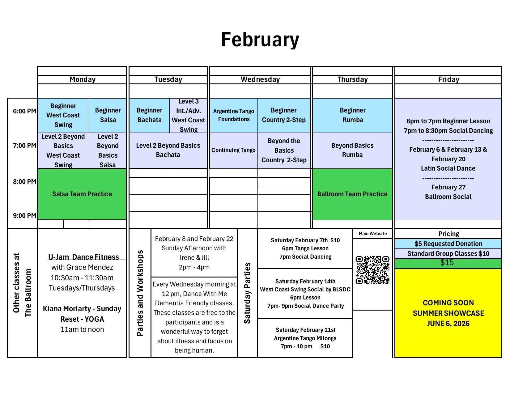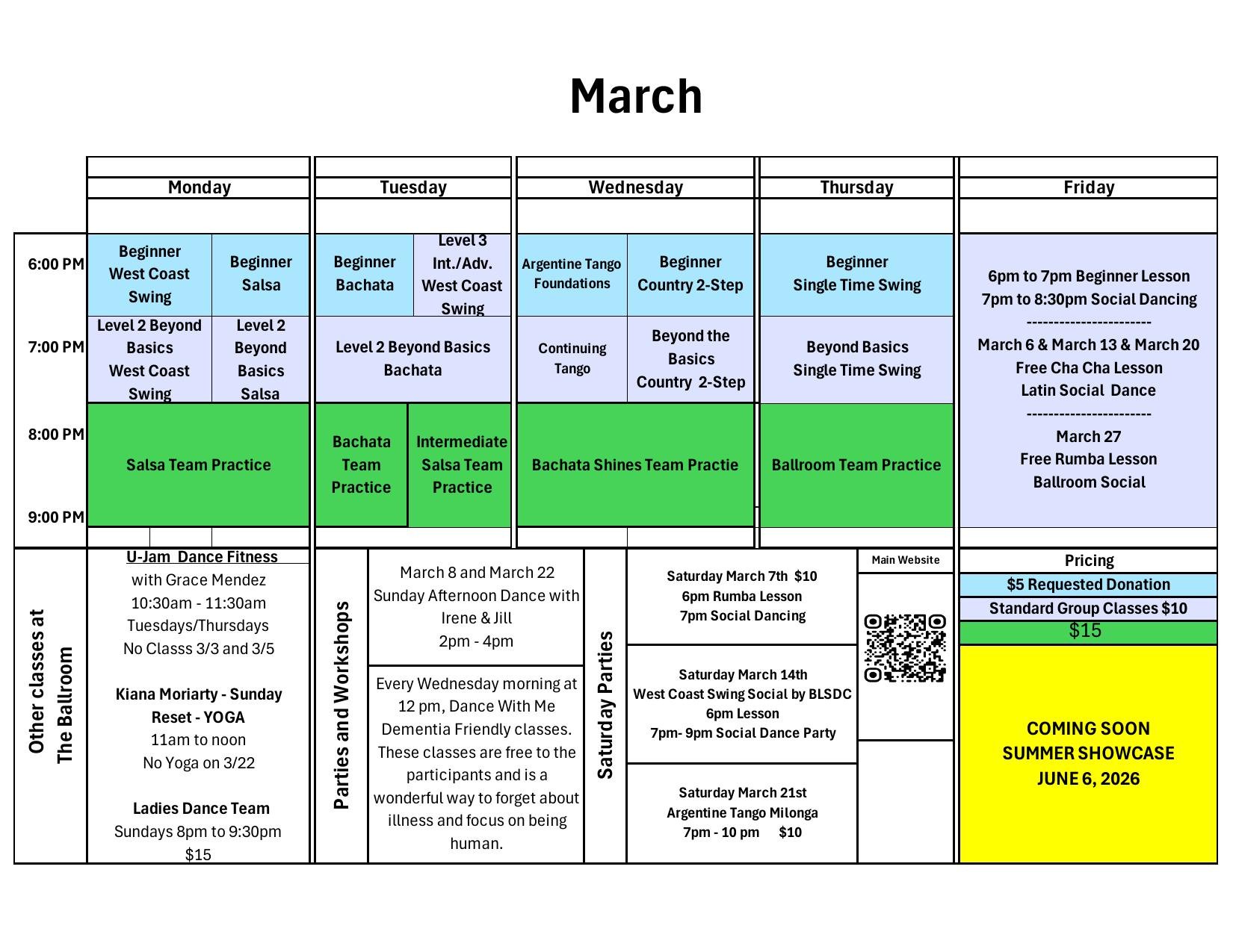 More info on weekly social dances below.