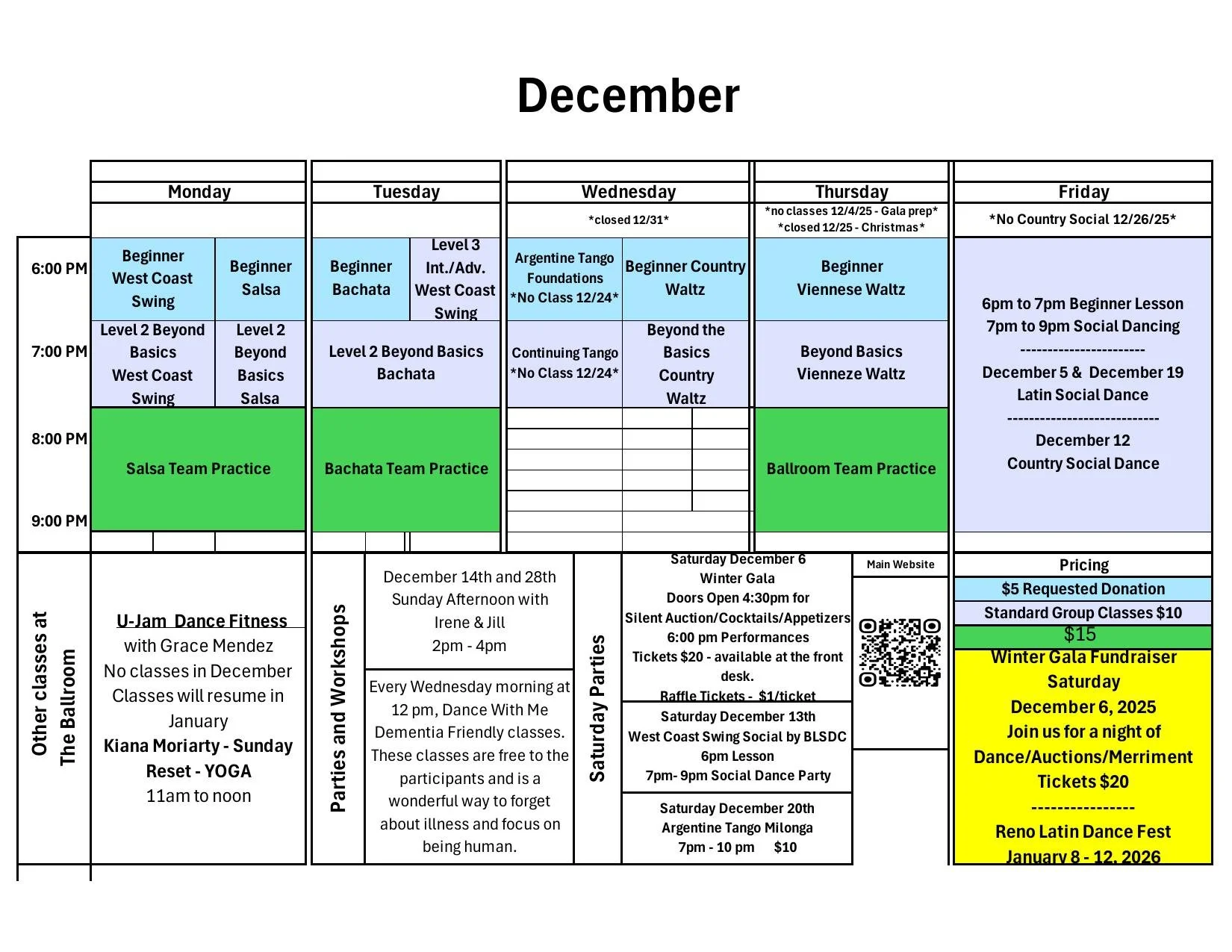 If you like helping others and feel in your heart to support The Ballroom of Reno’s free group classes with a donation, you can donate in the lobby when you sign in or anytime you come to your ballroom studio. Your generosity allows someone else to dance when there is a possibility they could not easily afford it.